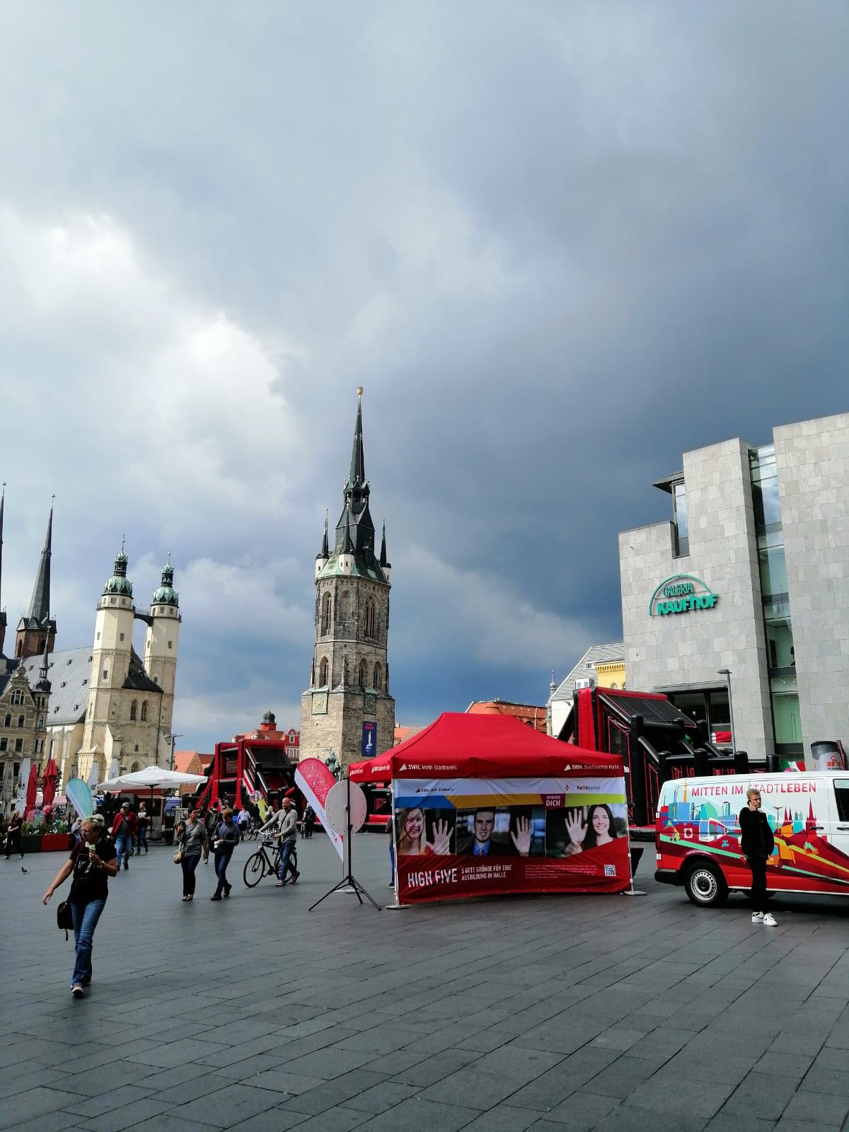am 13.09.2019 fand unser diesjähriger Event Nachmittag mit den Stadtwerken Halle auf dem Marktplatz statt. Passend zu den Bewerbungszeiträumen, 01.09.2019 – 15.11.2019 bei den Stadtwerken und 01.09. – 31.10.2019 bei der Stadt Halle (Saale), hatten wir die Möglichkeit diesen Azubi-Aktionstag zu unterstützen. Ziel war es, auf unsere gemeinsame Kampagne aufmerksam zu machen und möglichst viele junge Menschen für eine Ausbildung oder ein duales Studium bei uns zu begeistern.