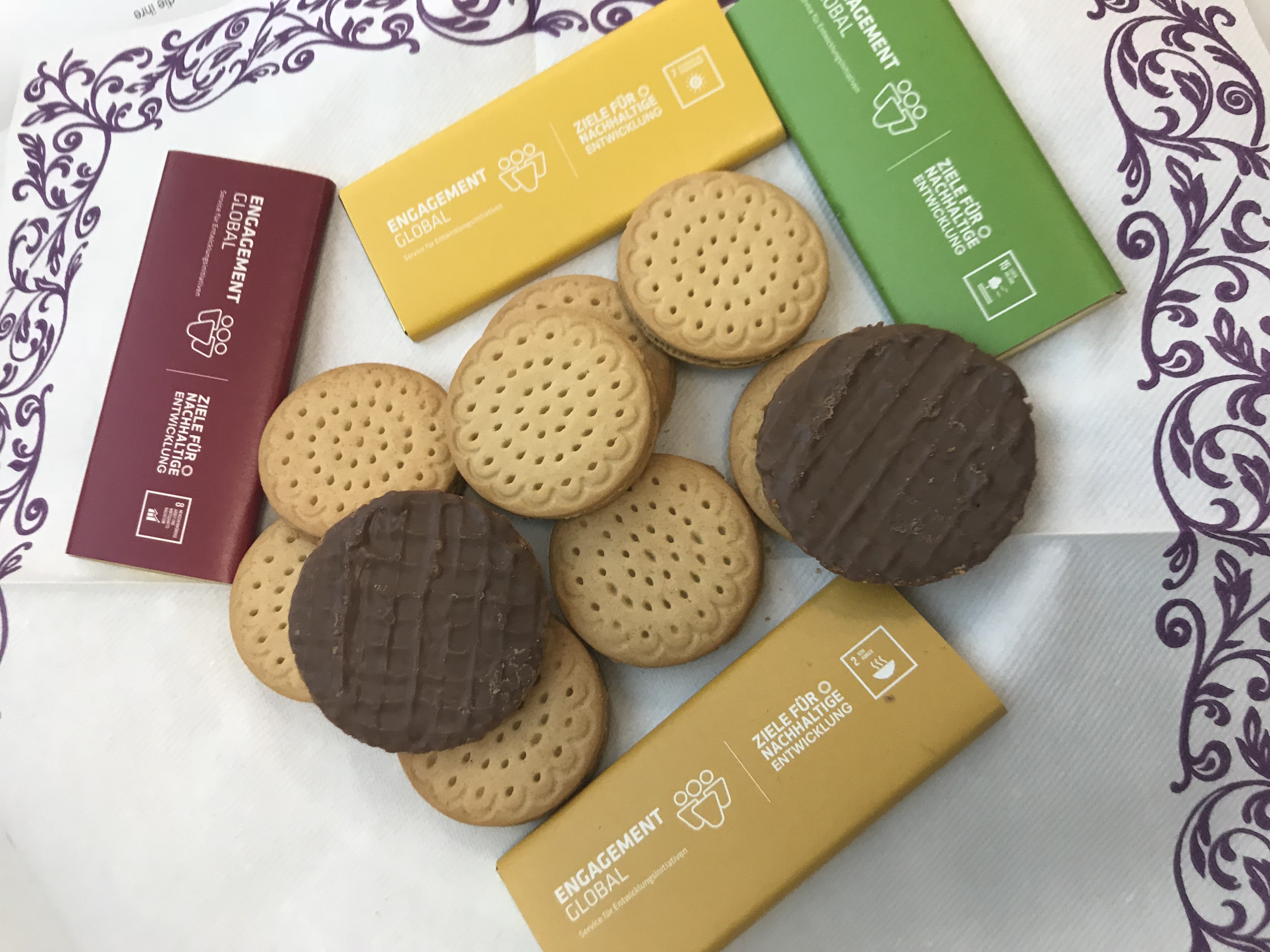 - Für das leibliche Wohl war auch gesorgt…mit fair gehandelten Tee, Keksen, Schokolade usw.