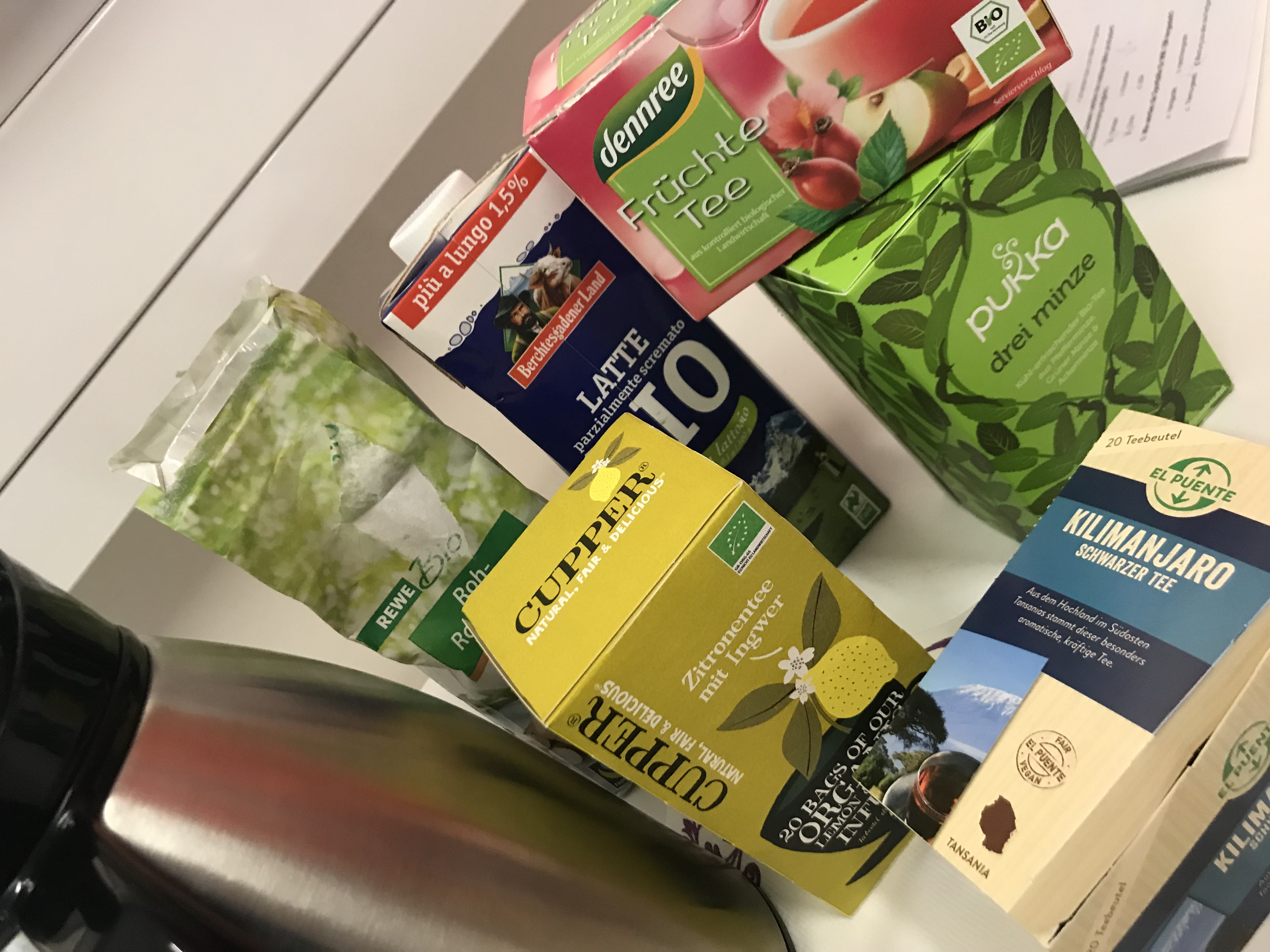 - bietet in ihren Sitzungen fair gehandelten Tee und Kaffee an