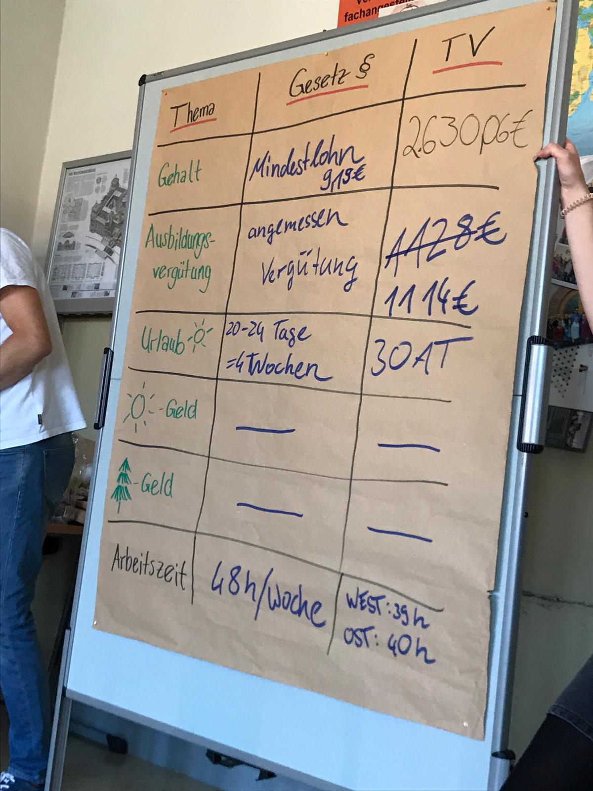 Zurzeit bin ich in der Berufsschule, wo wir auch aktuelle politische Themen behandeln und schon auf die Prüfungen vorbereitet werden. Auch einen Projekttag, bei dem uns Vertreter der ver.di (Vereinte Dienstleistungsgewerkschaft) besucht haben, hatten wir.